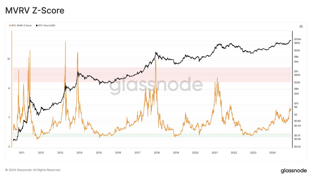 12/ The Mayer Multiple: The Mayer Multiple compares price to the 200-day SMA. Overbought conditions in previous cycles aligned with values above 2.4. Currently, a Mayer Multiple above 2.4 would correspond to a price of approximately $167,000. With Bitcoin under $100,000, this threshold remains distant.